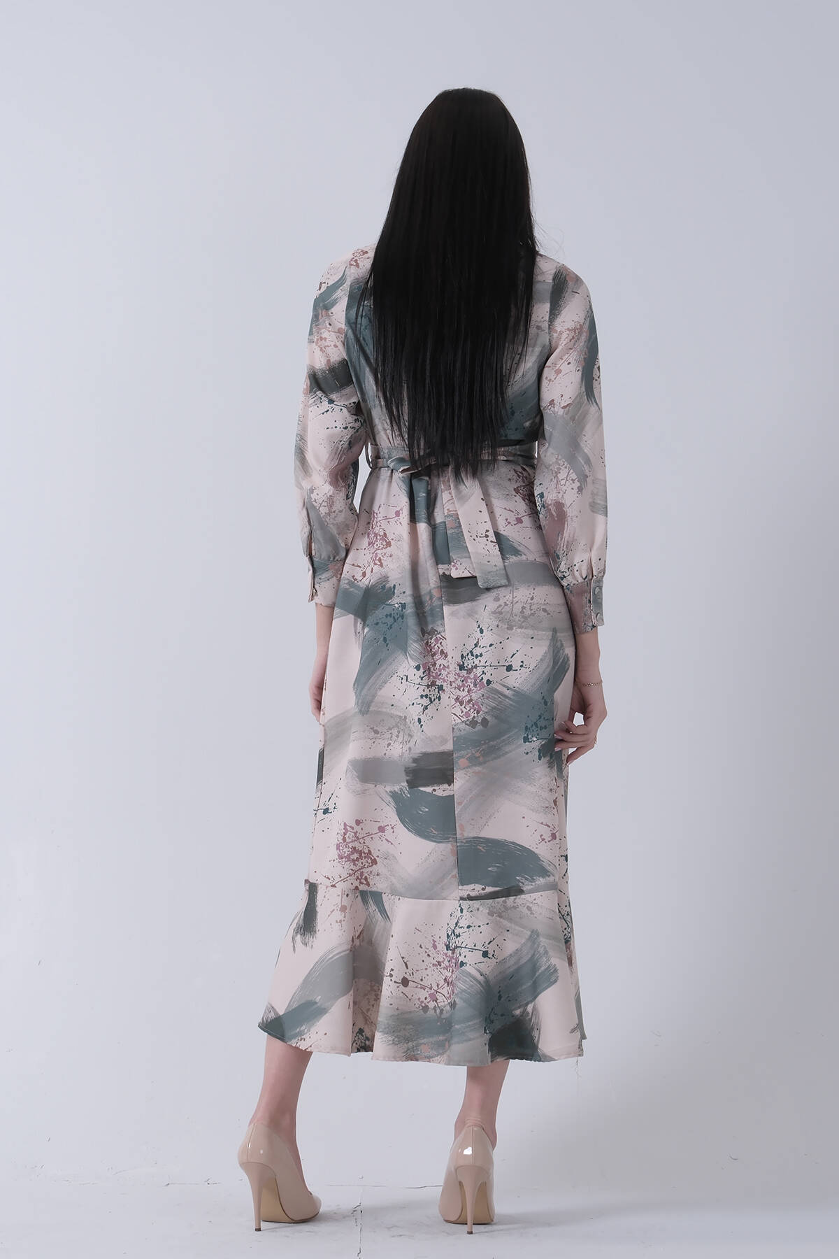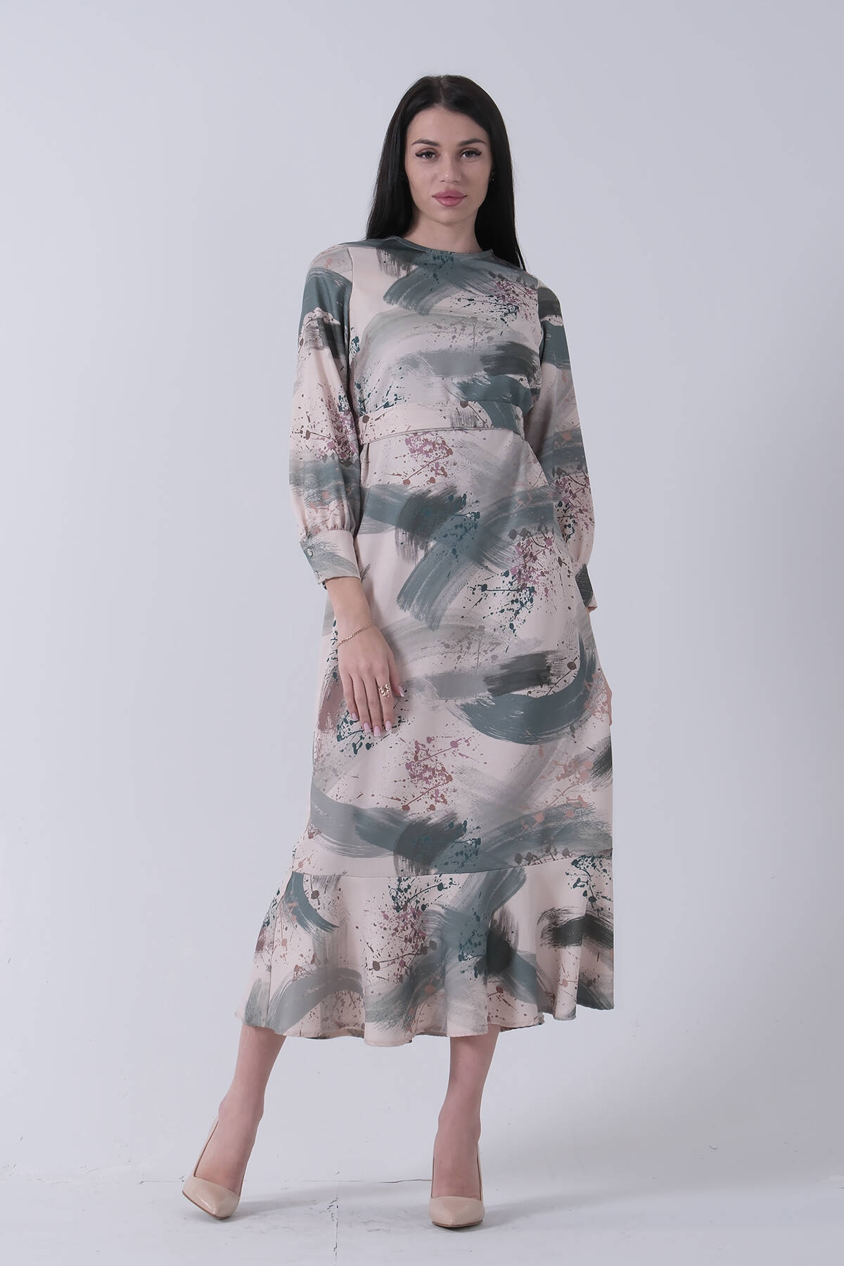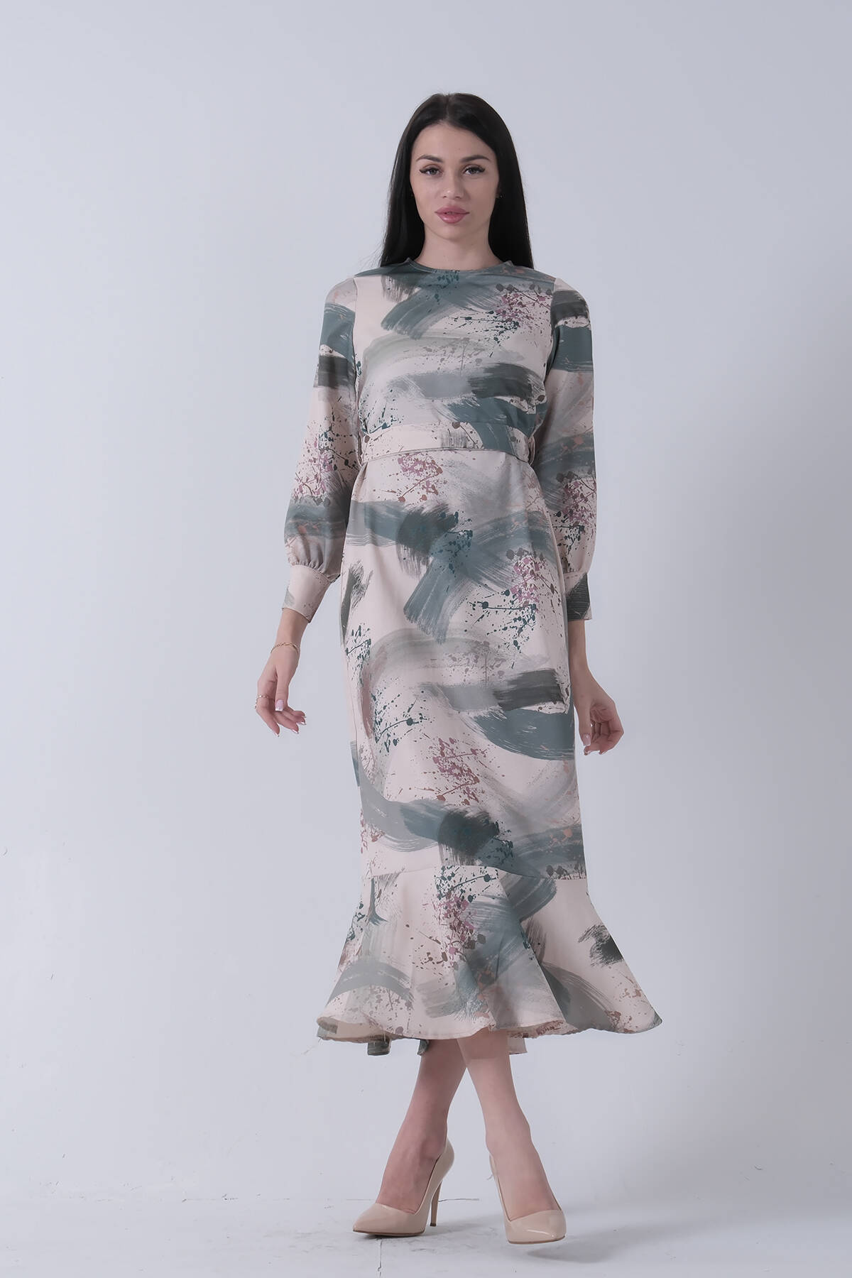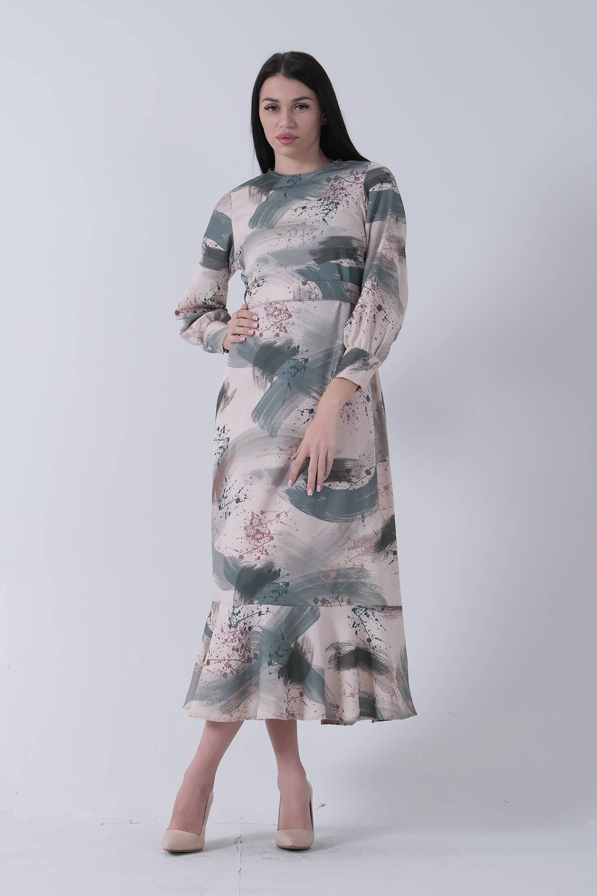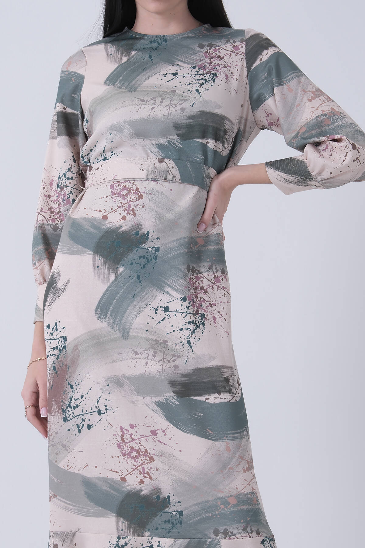 Zümrüt Fırça Darbesi Desenli Modern Şık Elbise 0807769.123