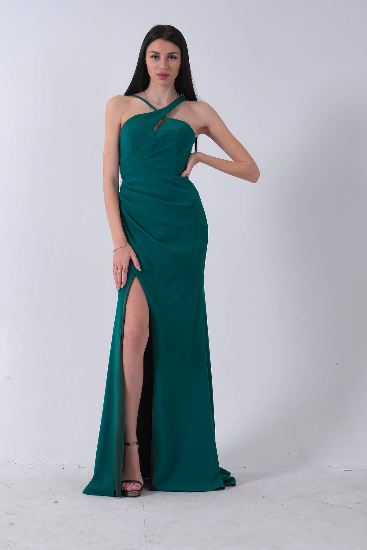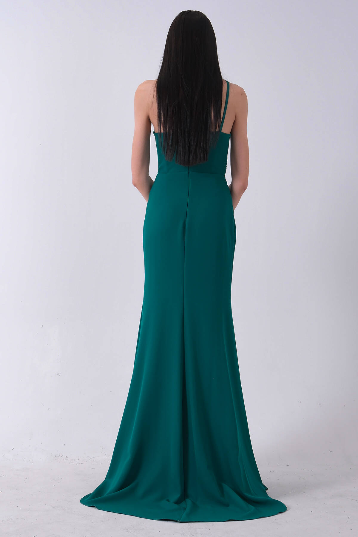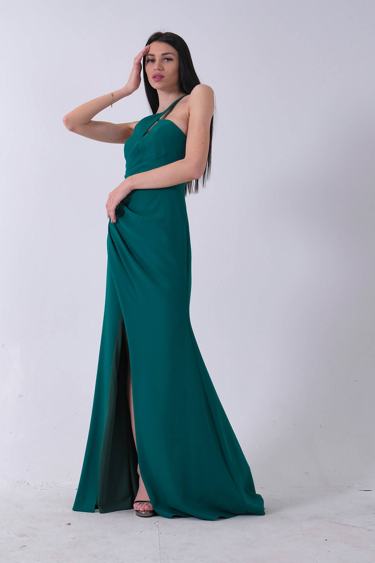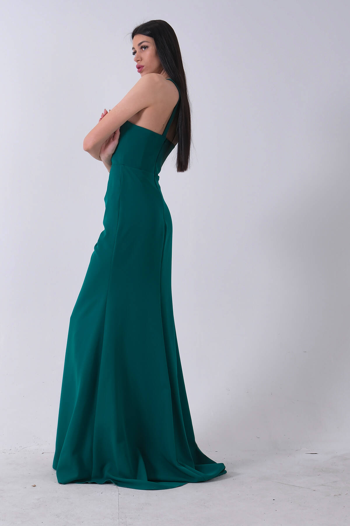 Zümrüt Kadın Kruvaze Yaka Yırtmaç Detaylı Uzun Abiye Elbise 1105273.123