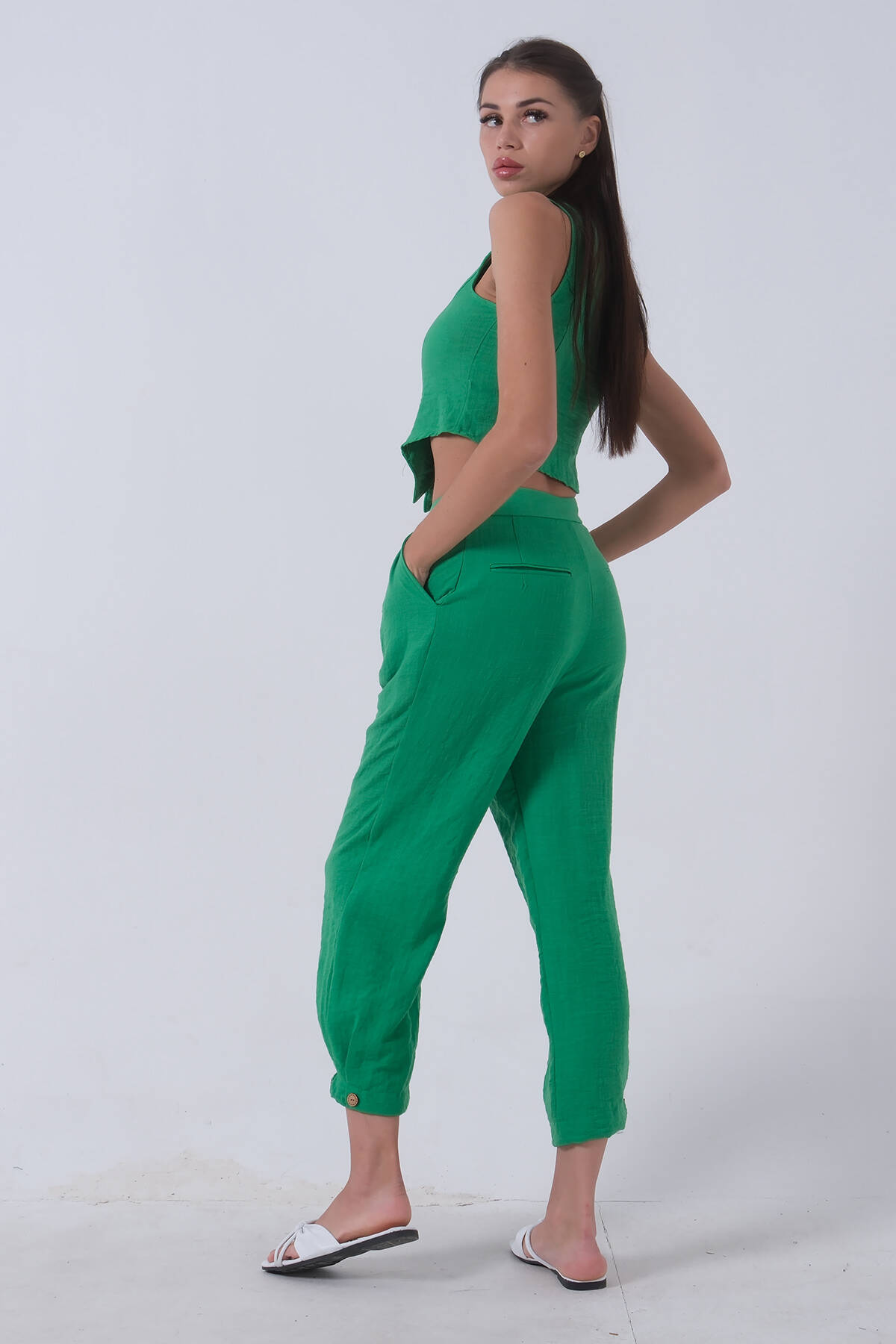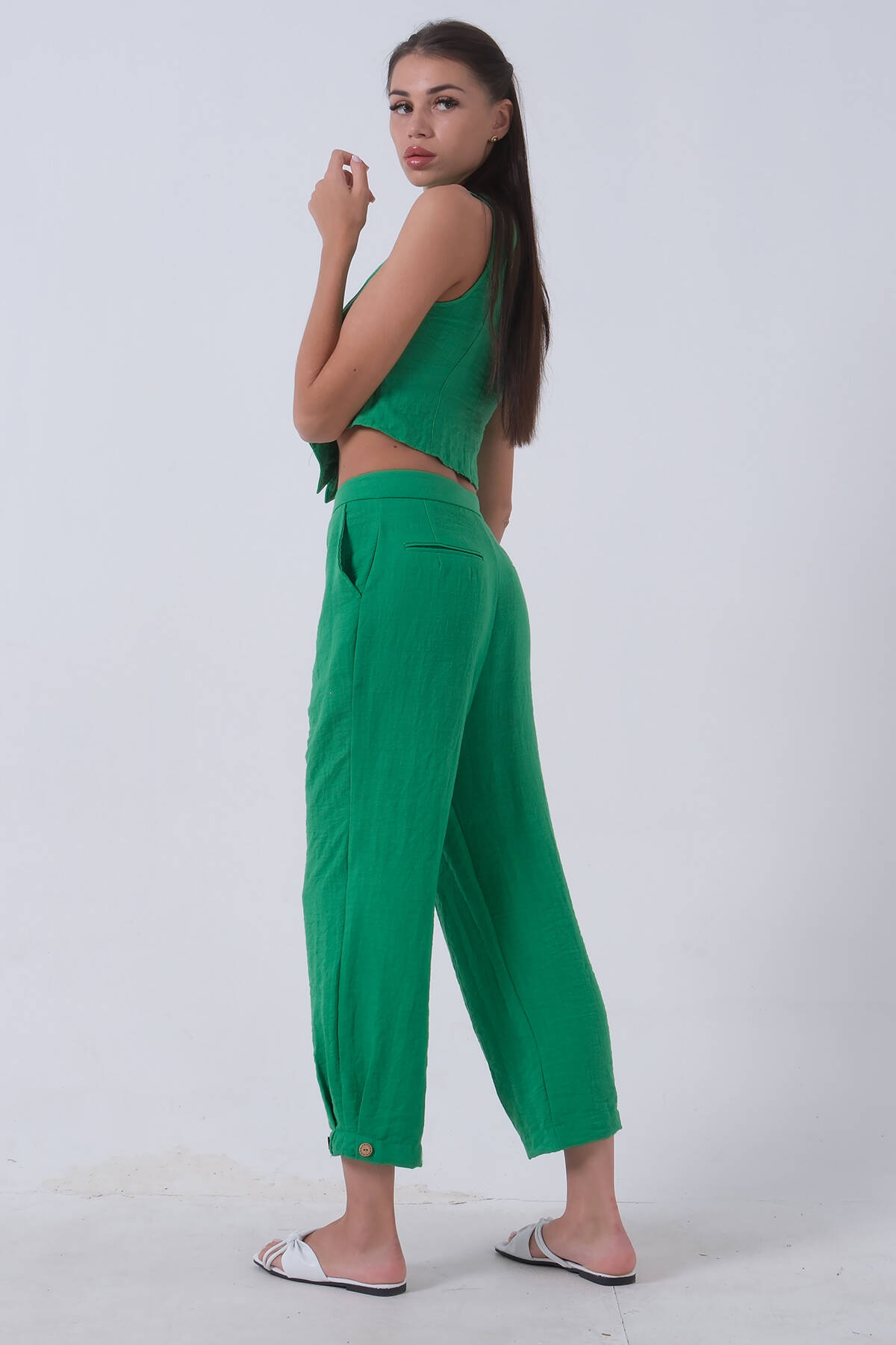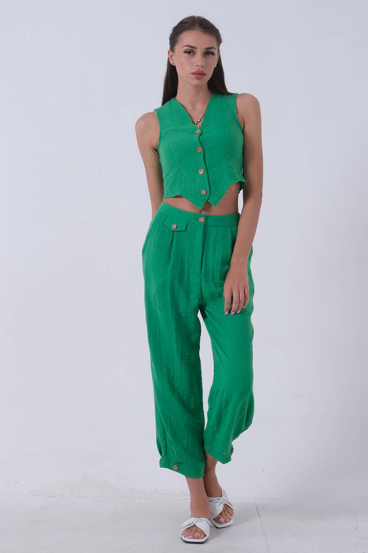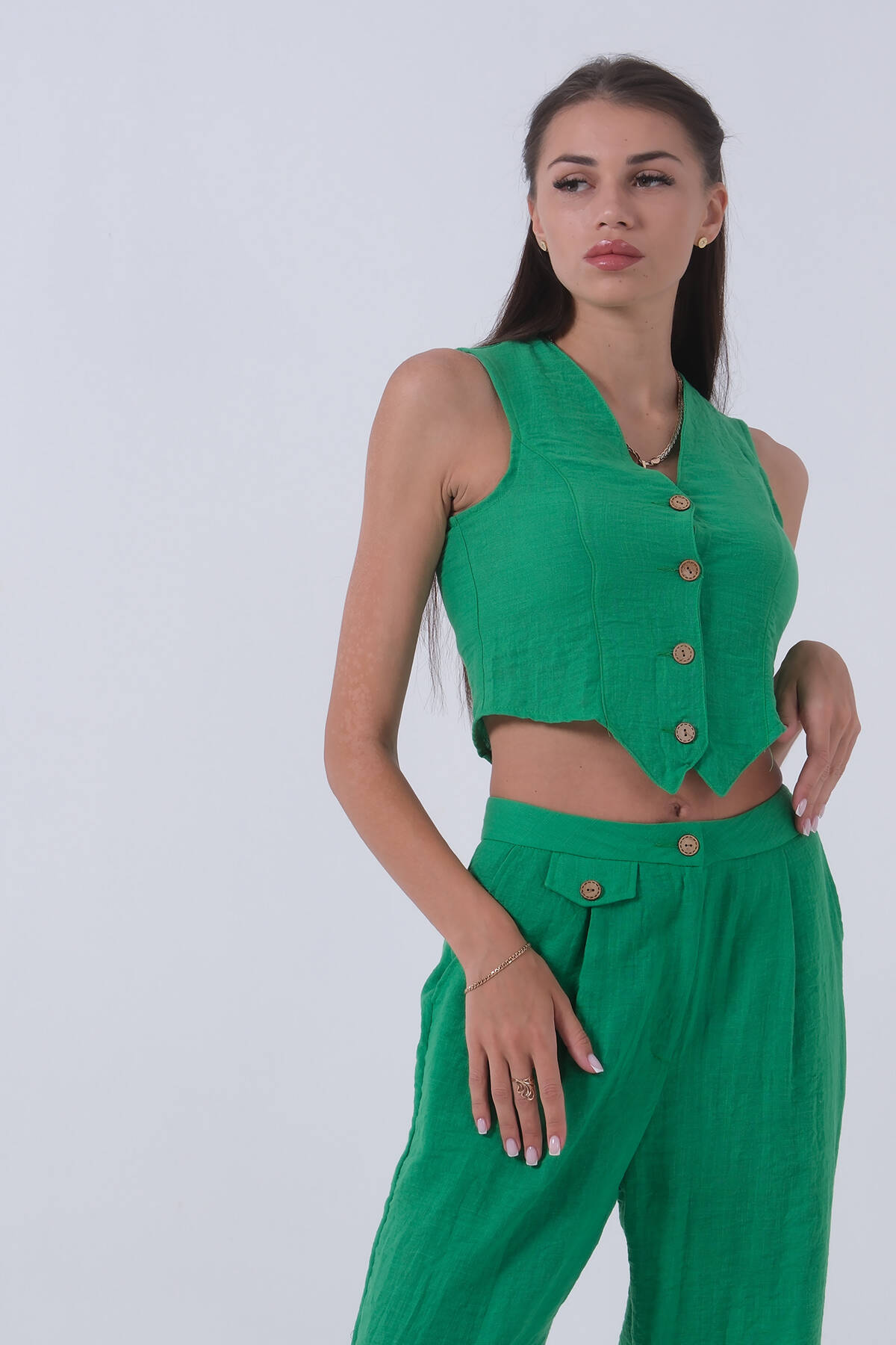 Zümrüt Keten Yelekli Takım 0106321.123