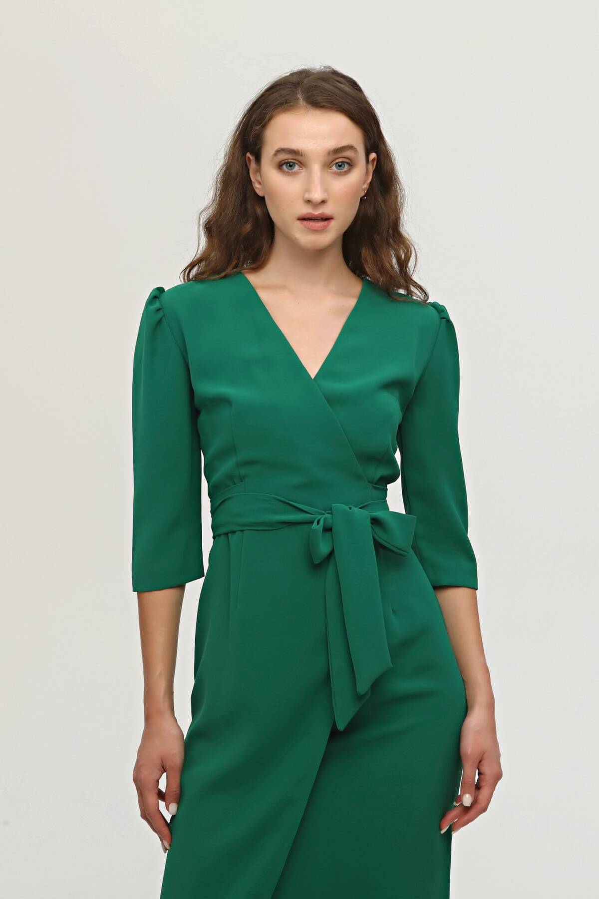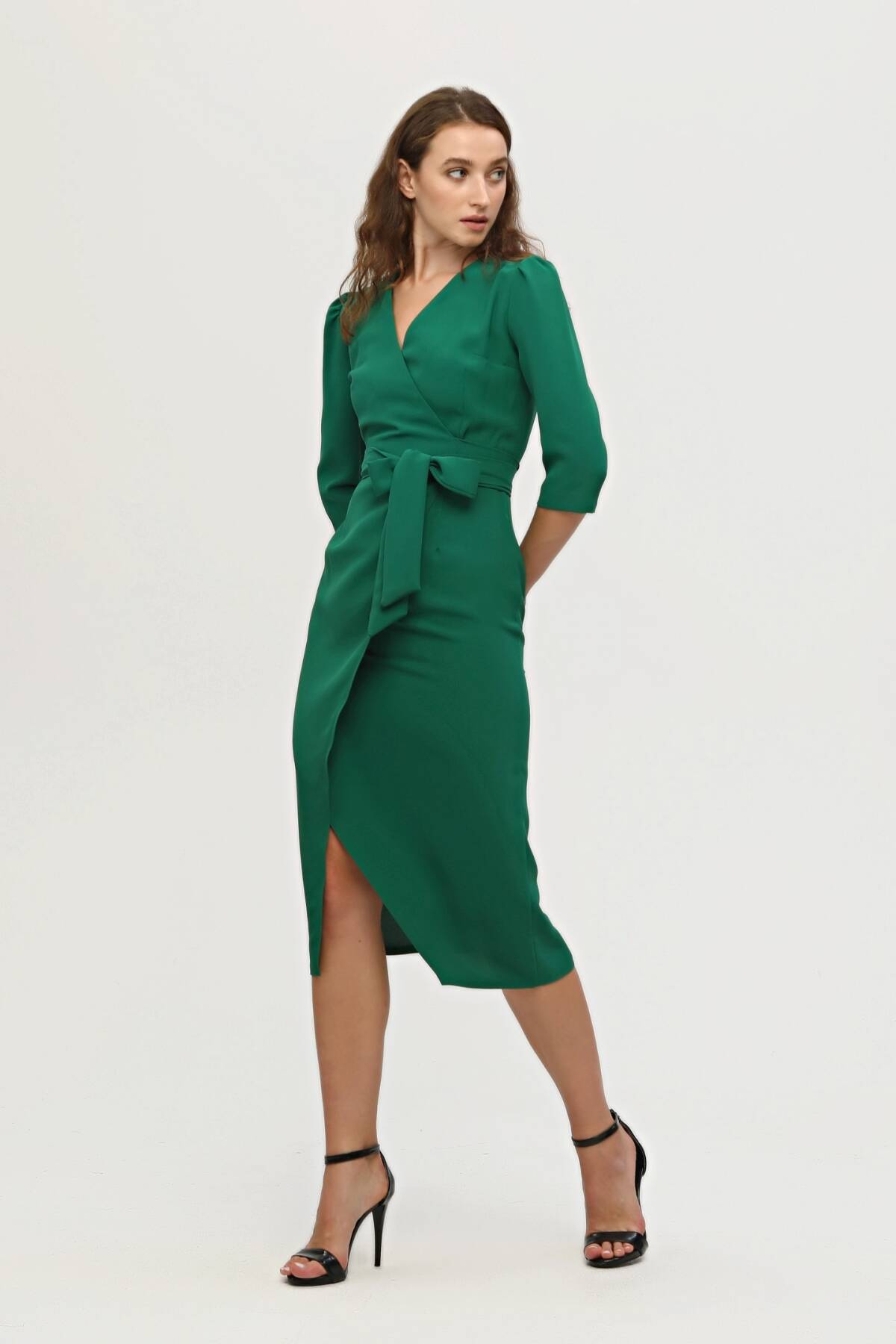 Zümrüt Kruvaze Yaka Midi Boy Krep Elbise 0104010.123